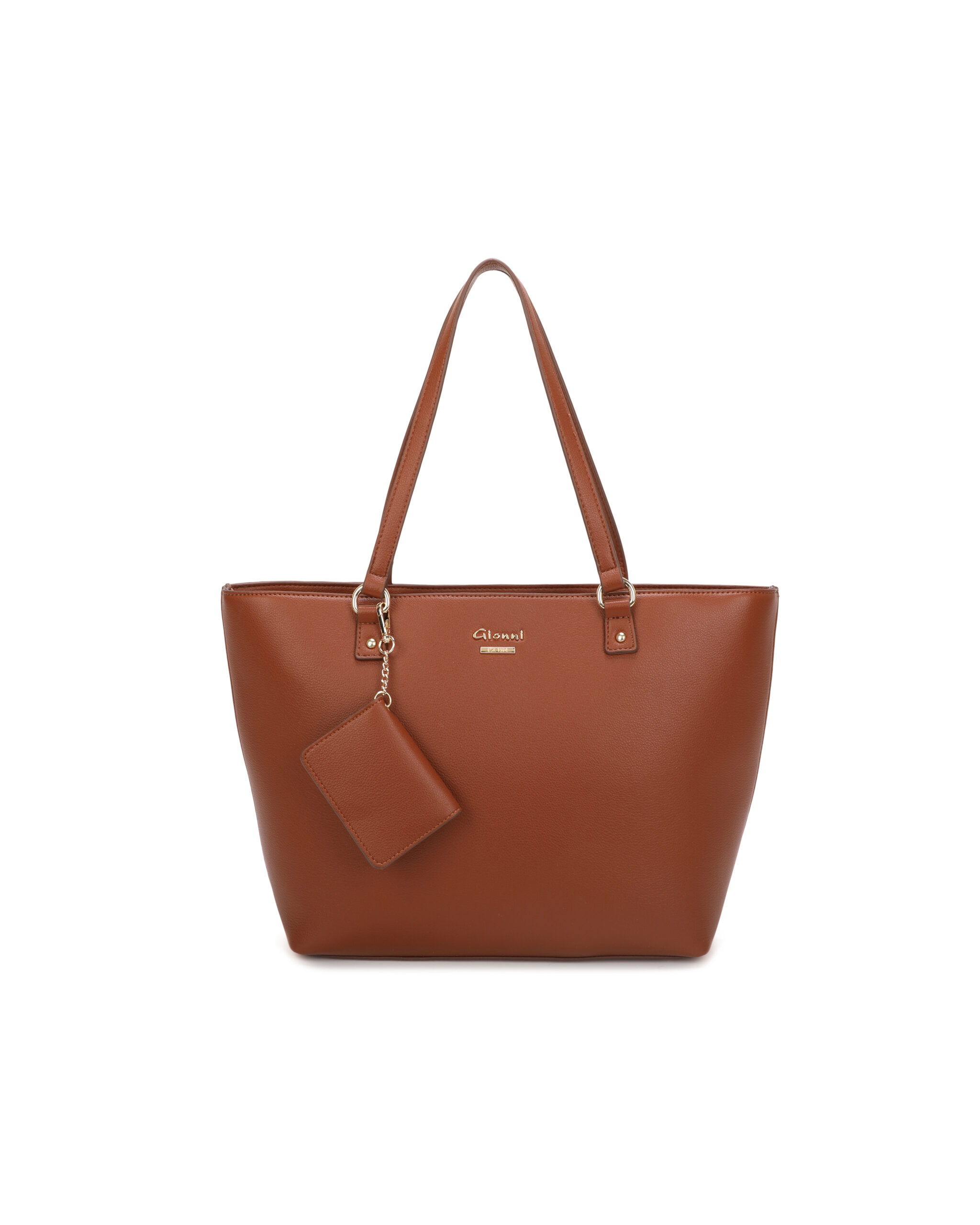 A roomy, on-the-go tote with comfortable shoulder straps. Includes a small attached flap purse. Available in brown and black.
