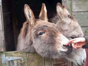 Currently we have 20 goats, 8 sheep, 12 donkeys, a pony, cows, ducks, hens etc so it is very full on, a very full time job! Often I finish at 10.30pm if I’m lucky and we do have a lot of animals with special needs. One of our sheep, she was born blind, we also have a lot of animals with hoof problems for example our cow has a congenital hoof deformity so she needs regular treatment. We also have a little pig who has gone through 2 hernia surgeries. It is all very time consuming but terrifically rewarding.
