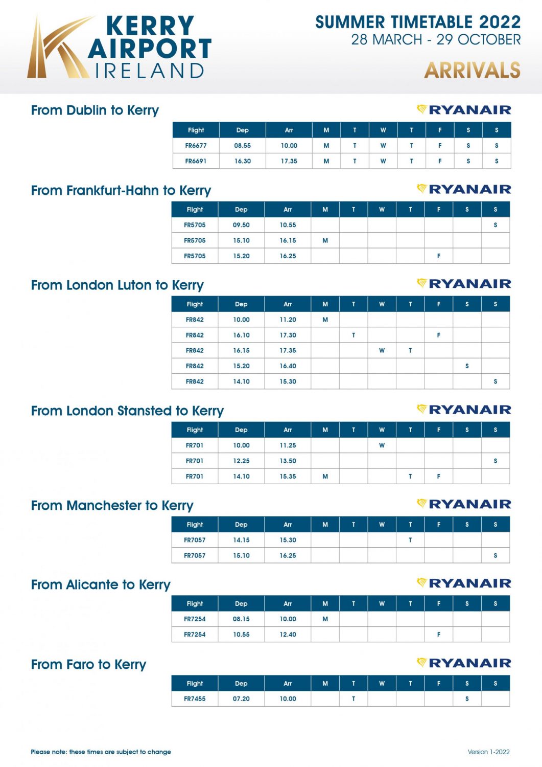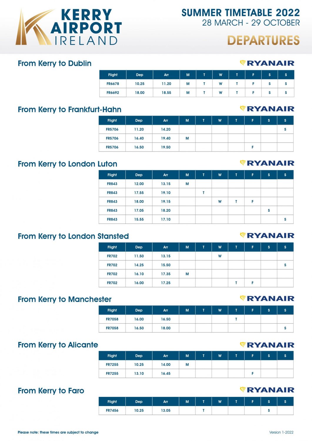 THE waiting is over for thousands of people who are looking forward to flying from Kerry Airport to the 2022 Summer Sun routes of Alicante in Spain and Faro in Portugal with Ryanair.com.