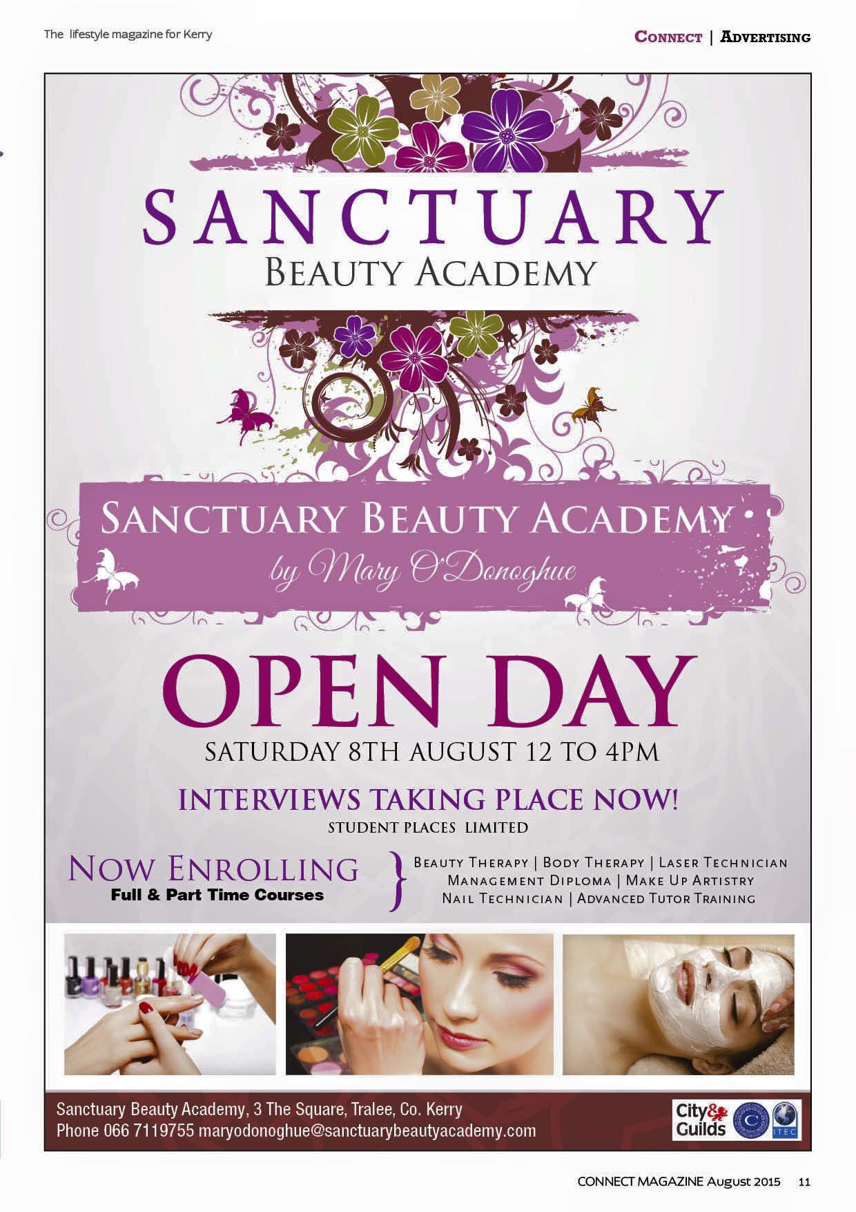 Sanctuary Spa Open Day by admin August 7, 2015 admin Are you thinking of a career in the Beauty industry? Don’t miss the open day tomorrow, Pop in and see the award winning Mary O Donoghue at the Sanctuary Beauty Academy in the square Tralee and start your career on the right path What's Your Reaction? Excited 0 Happy 0 In Love 0 Not Sure 0 Silly 0