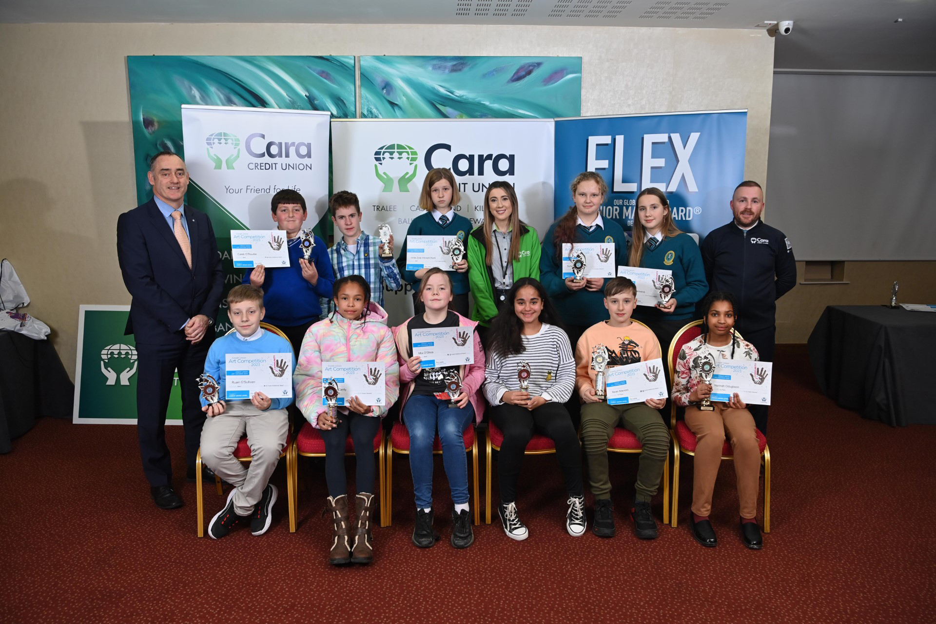 Excitement was in the air as over 200 people attended Cara Credit Union’s Prize Giving Night in Manor West Hotel, Tralee. Invited guests included our inspirational artists from Tralee, Castleisland, Killorglin, Ballyduff and Causeway, their teachers and their families. The theme of this year’s Credit Union Art Competition was the ‘Me and My Community’ and this theme was excellently executed in all age group from under 7’s right up to the adult category.