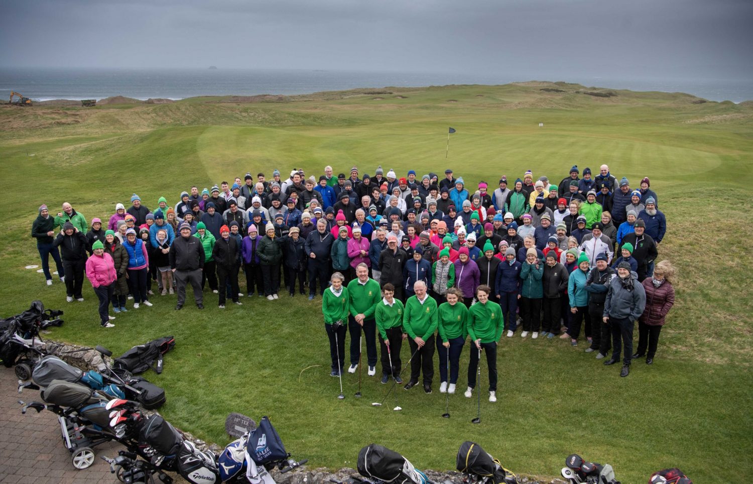 28.1.2024 Repro Free : South to southwest winds, veering northwesterly, will reach force 6 too force 8 or higher at times hits all Irish coasts as the Captains drive took place at Tralee Golf Club . The Tralee Golf Club 2024 Captains’ Drive-In at Barrow took place over the weekend at the course . Members pose for pictures on the 18th . . Photo By: Domnick Walsh/Eye Focus.